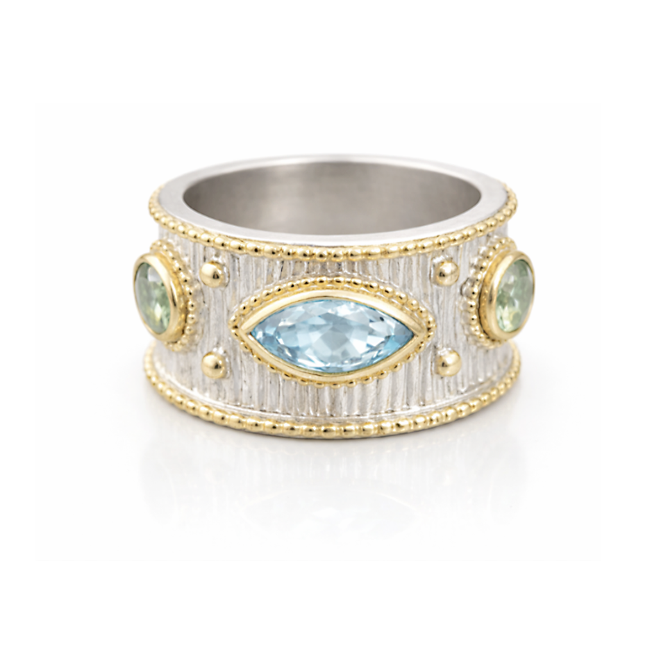 BAGUE BAYA ARGENT TOPAZE BLEUE ET PÉRIDOT
