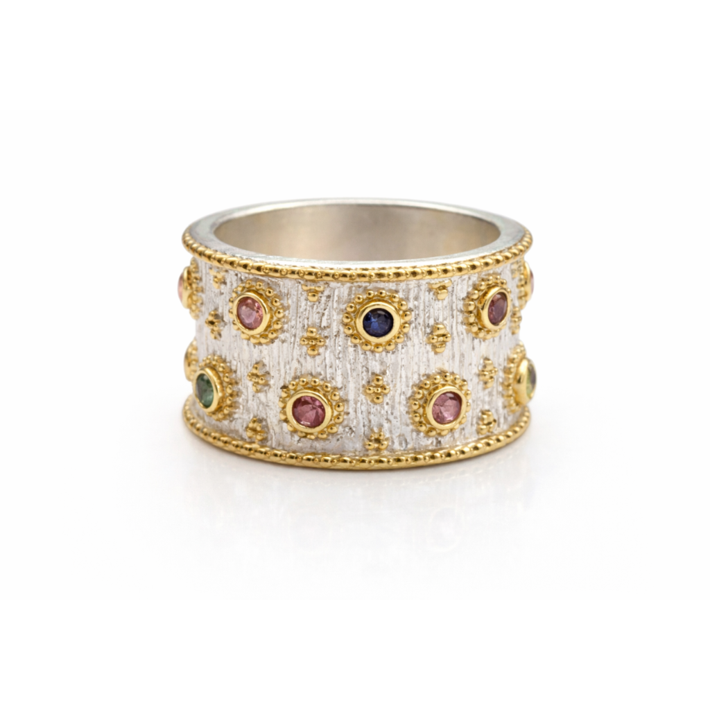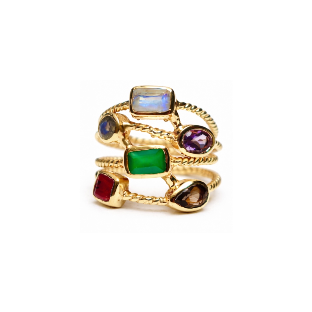 BAGUE AREZZO OR ET MIX DE PIERRES