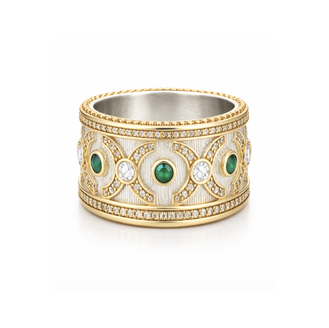 La bague Camelia est en laiton plaquée argent ornée d'onyx vert et zircons.