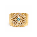 La bague Cistus est en laiton plaqué or, ornée de topaze bleue et zircons.