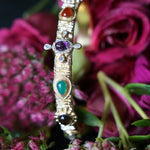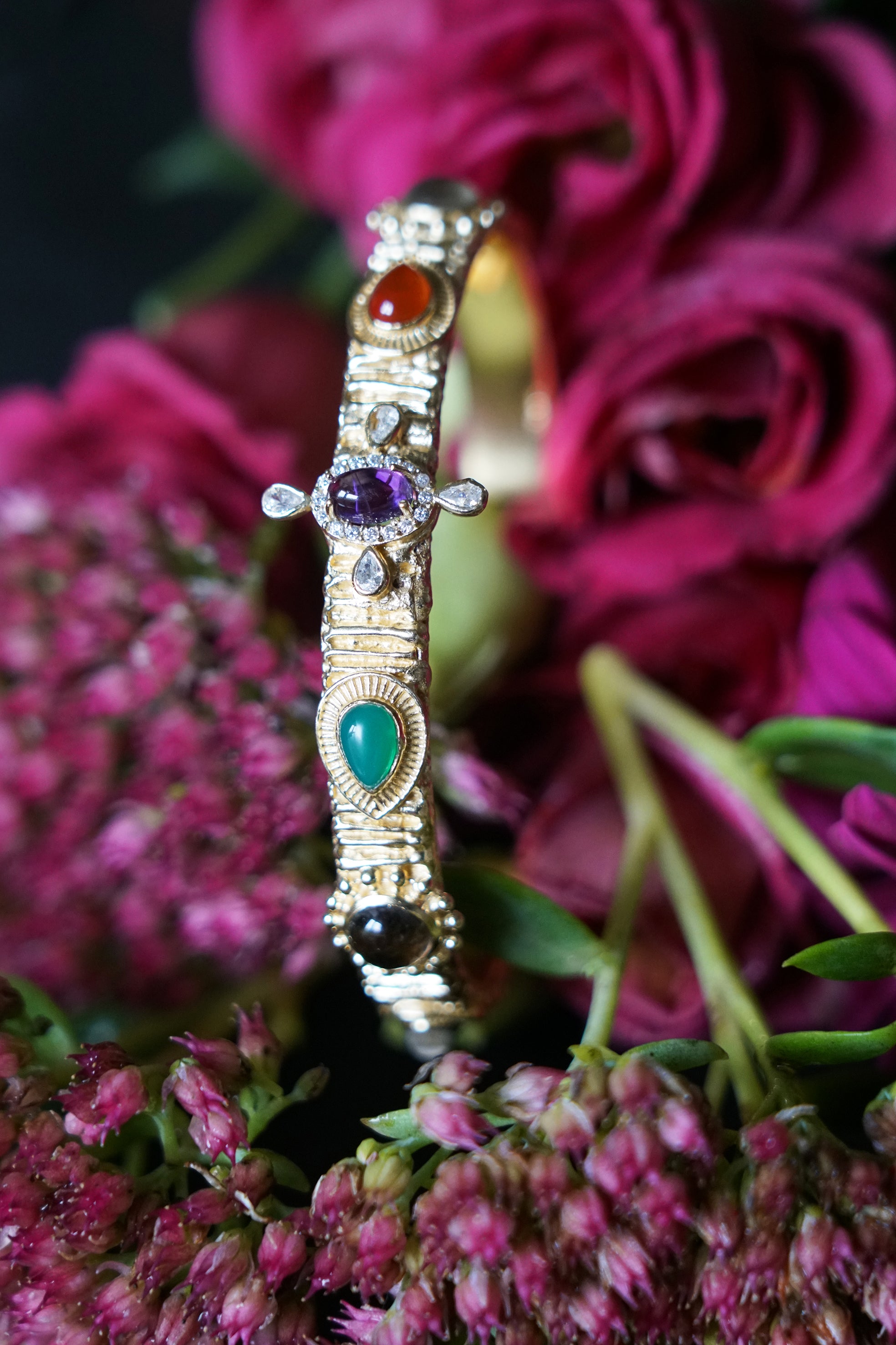 Bracelet ARGOS plaqué or, orné de zircons et de multi-pierres.