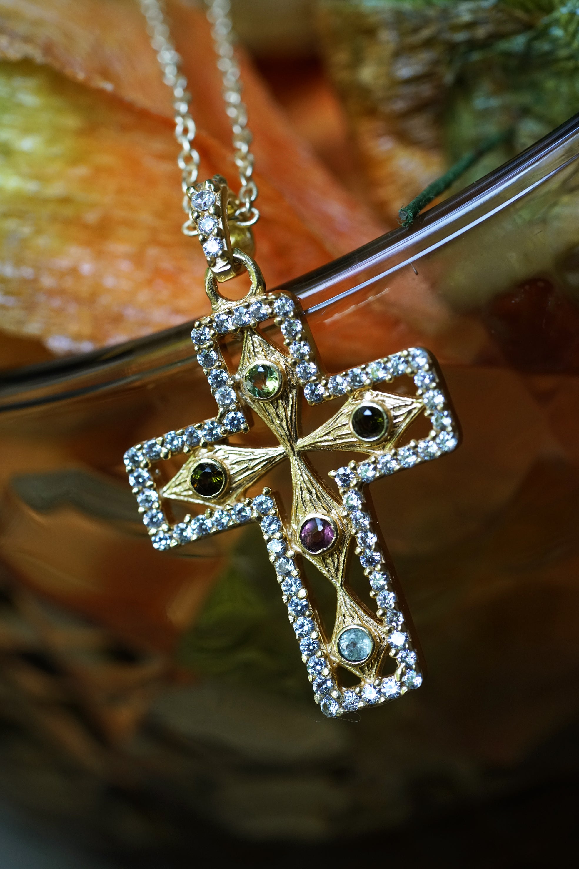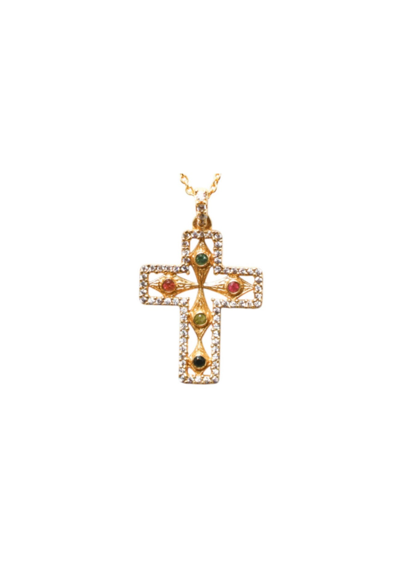 Collier plaqué or orné de tourmalines et zircons