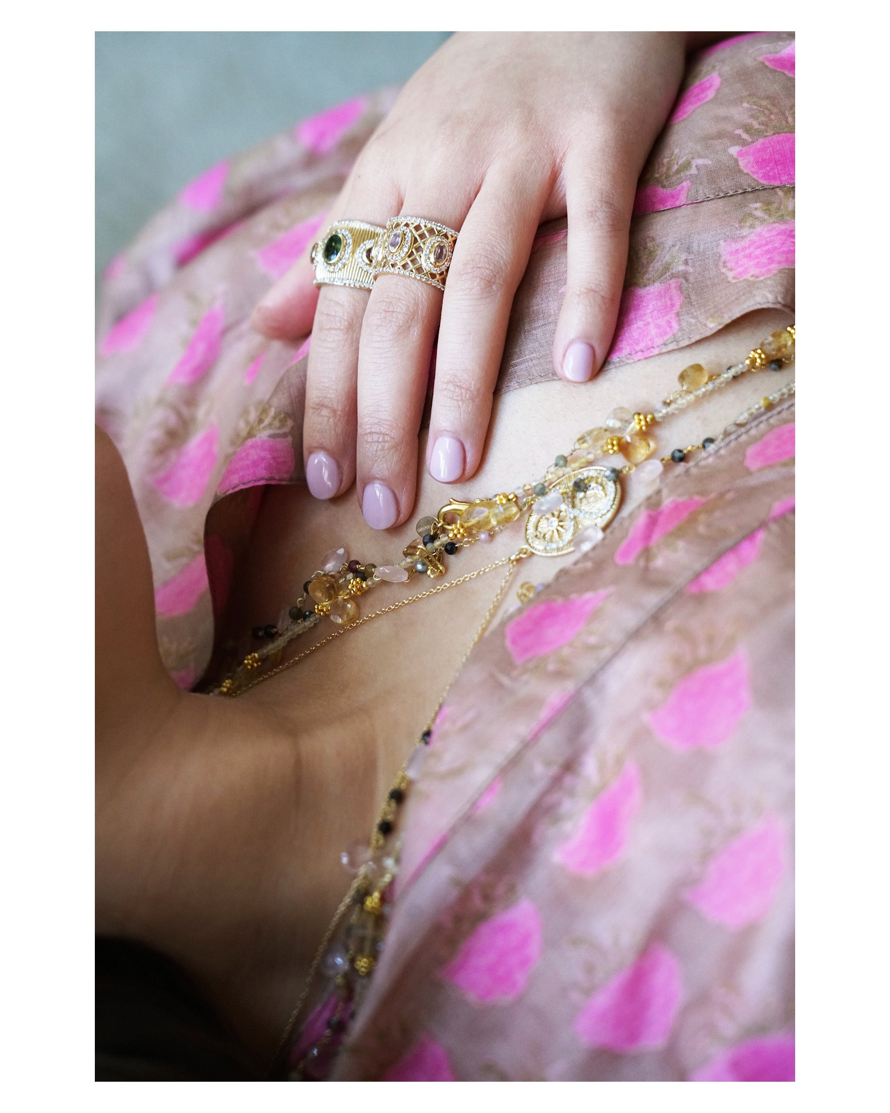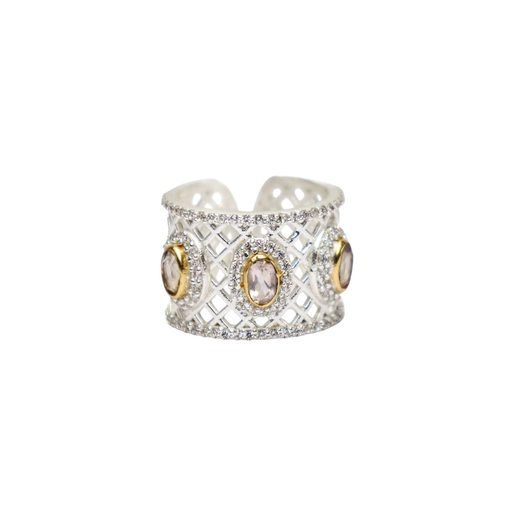 Bague ANALI plaqué argent, orné de zircons et de quartz rose.