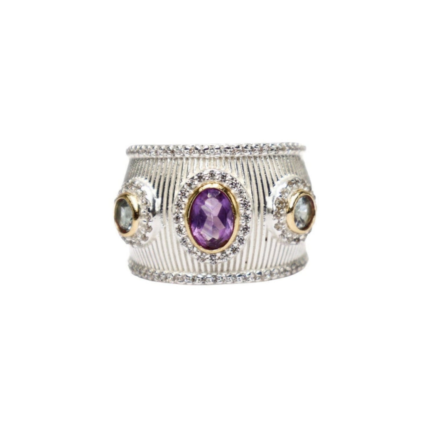 Bague TESSA plaqué argent, orné de topaze bleu, d'améthyste et de zircons.