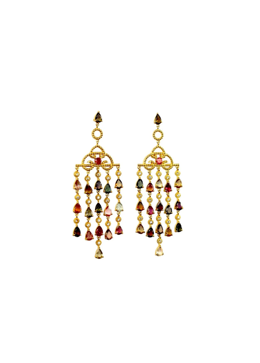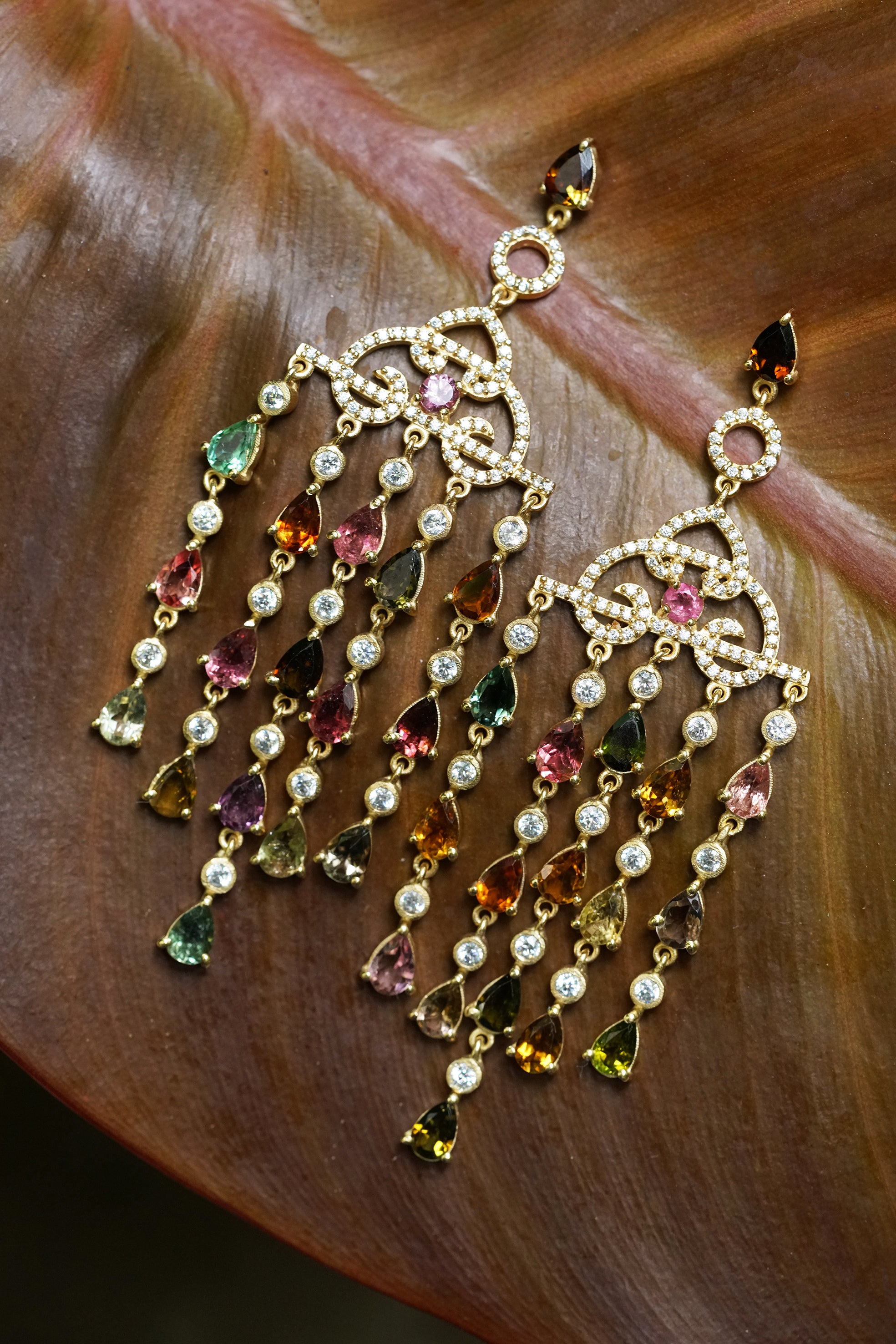 Boucles d'oreilles or ornés de tourmalines et zircons